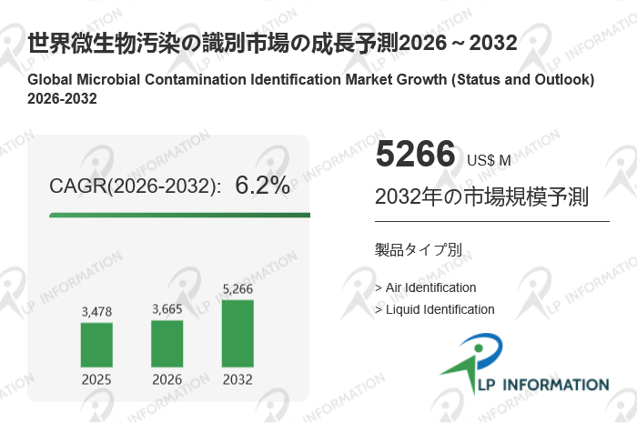 LP Informationの最新の調査レポート「世界微生物汚染の識別市場の成長予測2026~2032」では、過去の販売実績を基に、2025年の世界全体の微生物汚染の識別の販売状況を分析し、地域別および市場セクター別に、2026年から2032年までの微生物汚染の識別の販売予測を示している。本レポートでは、地域、市場セクター、サブセクター別に分類されたキーワードの売上を百万米ドル単位で詳細に分析しています。