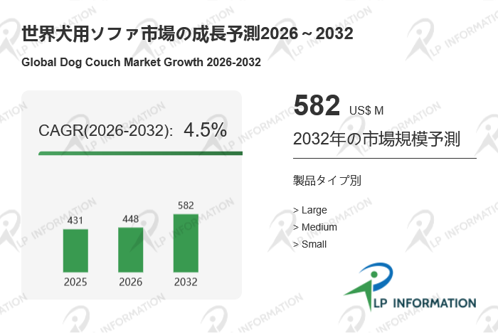 2026年3月、LP Information株式会社(所在地:東京都中央区)が発表した最新調査レポート**「世界犬用ソファ市場の成長予測2026~2032」**では、過去の販売実績を基に、2025年の世界全体の犬用ソファの販売状況を分析し、地域別および市場セクター別の2025年から2032年までの販売予測が示されています。このレポートでは、地域別、市場セクター別、サブセクター別に分類された犬用ソファの売上を、百万米ドル単位で詳細に分析しています。