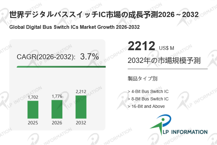 2026年3月18日に、LP Information(所在地:東京都中央区)は、「世界デジタルバススイッチIC市場の成長予測2026~2032」の最新調査レポートを発表しました。本レポートでは、デジタルバススイッチIC市場の動向を深く掘り下げ、売上、販売量、価格推移、市場シェア、主要企業のランキングなどを包括的に分析しています。さらに、分類、応用、主要地域・国などのしを整理し、2026年から2032年までの市場動向に基づく成長予測を掲載しています。本調査では、定量データに加え、競争環境の変化や企業の成長戦略を読み解くための定性的な分析も行い、業界関係者がより戦略的な意思決定を行えるよう支援しています。