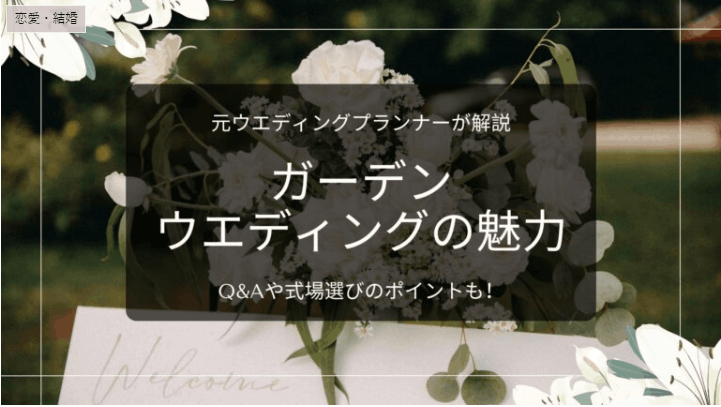 そうした経験もふまえて、本記事では「ガーデンウエディング」の魅力をたっぷりとお伝えします。さらに、「雨が降ったらどうなるの?」「夏や冬はできない?」などの疑問に答えたり、「ガーデンウエディング」ができる式場の情報も紹介していますので、是非参考になさってくださいね。
