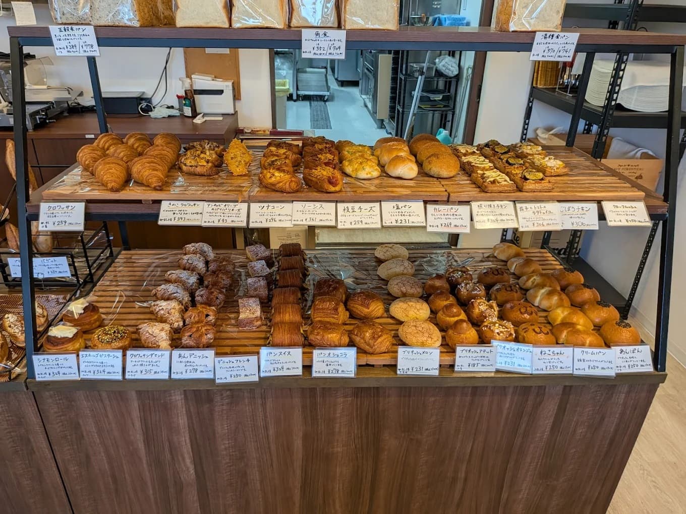 店内には惣菜パンから菓子パンまで魅力的なラインナップがズラリと並んでいて、どれもボリュームがあって食べ応えがありそうでした。