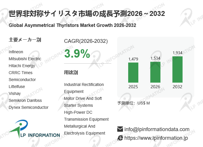 無料サンプルをご提供しており、関連リンクから直接お申し込み可能です:https://www.lpinformation.jp/reports/669547/asymmetrical-thyristors