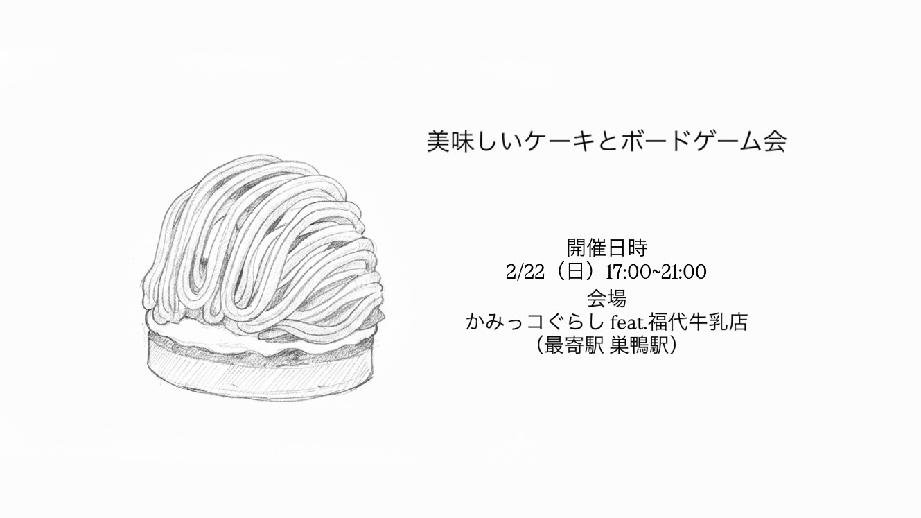 【巣鴨】2月22日(日)に美味しいケーキとボードゲーム会を開催します。